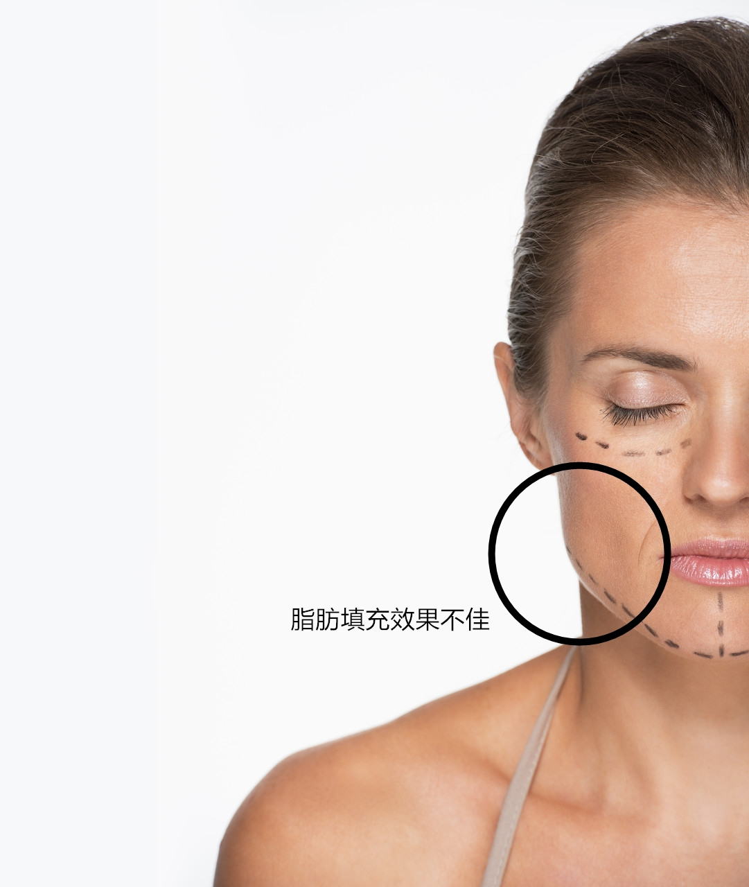 1、如果是因为填充后外观不对称,造成的效果不佳的情况,需对缺陷的部位重新填入脂肪进行改善。