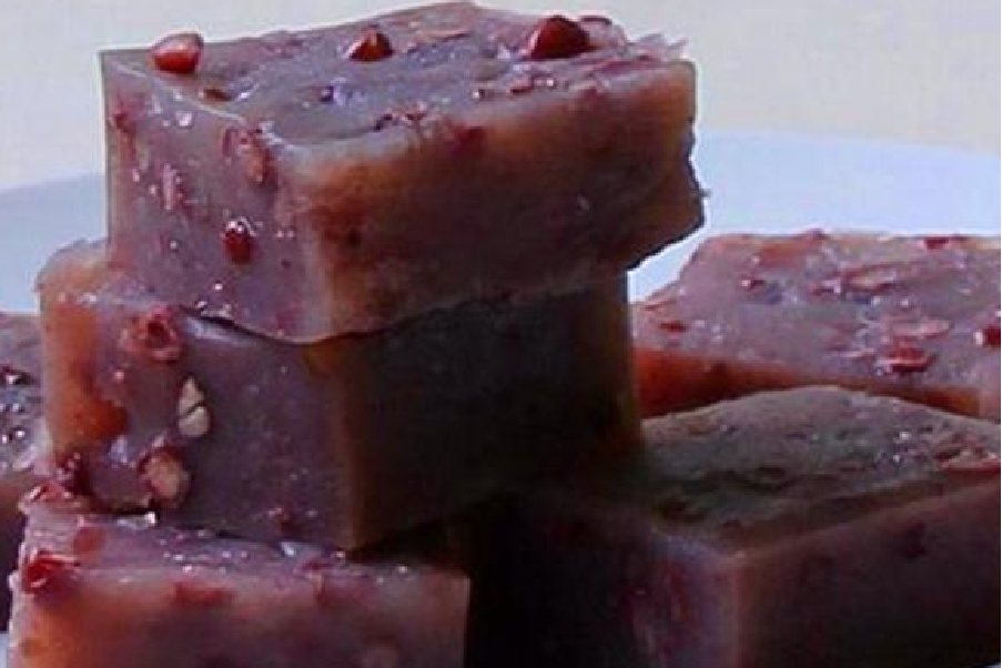 红豆洗干净后浸2小时,沥干水分,然后放入砂锅内,加水煮滚后改慢火再煮至红豆裂开。将红豆水、红豆和冰糖煮溶,加入油拌匀。将荸荠粉用水溶开,徐徐倒入糖水内搅至粘稠状,倒入盆内,大火隔水蒸30分钟后放凉即可。