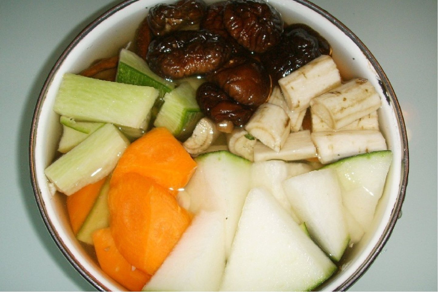 蔬菜五行汤是白萝卜、白萝卜叶、胡萝卜、干香菇、牛蒡合成的,含有胡萝卜素以及维生素、膳食纤维等成分,营养价值比较高。1、促进胃肠道蠕动:五行蔬菜汤内含有的各种营养物质,可以促进胃肠道蠕动,预防便秘。2、减肥瘦身:五行蔬菜汤含有的膳食纤维,还可以减少脂肪在体内堆积,能够帮助减肥瘦身。