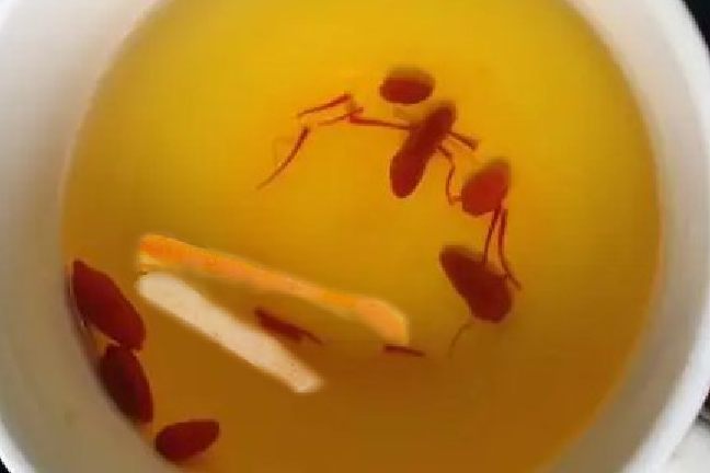 将藏红花和枸杞陈皮放入杯中,注入80度温水泡10分钟,放凉后即可饮用。