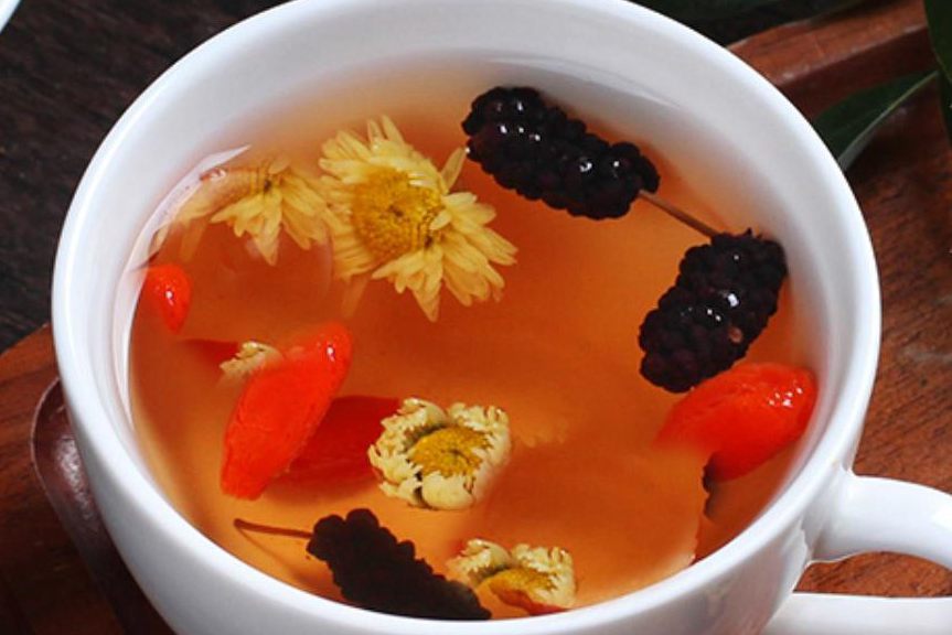 1.乌发:桑葚含有乌发素,具有一定的乌发作用。2.散风清热:菊花微寒清热,入肺经,能够疏散肺经风热。可以用于治疗外感风热引起的感冒,或温病初起、温邪犯肺引起的发热、头痛、咳嗽等症状。3.滋补肝肾:枸杞子味甘性平,入肝肾经,能够滋肾精、益精血、补肝血。因此,可用于治疗肝肾精血亏虚导致的腰膝酸软、眩晕耳鸣、遗精滑精、不孕不育、目昏不明等。