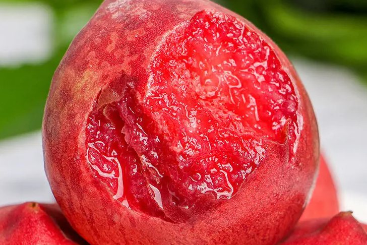 将采摘成熟的血桃,用温水清洗干净,可直接食用。