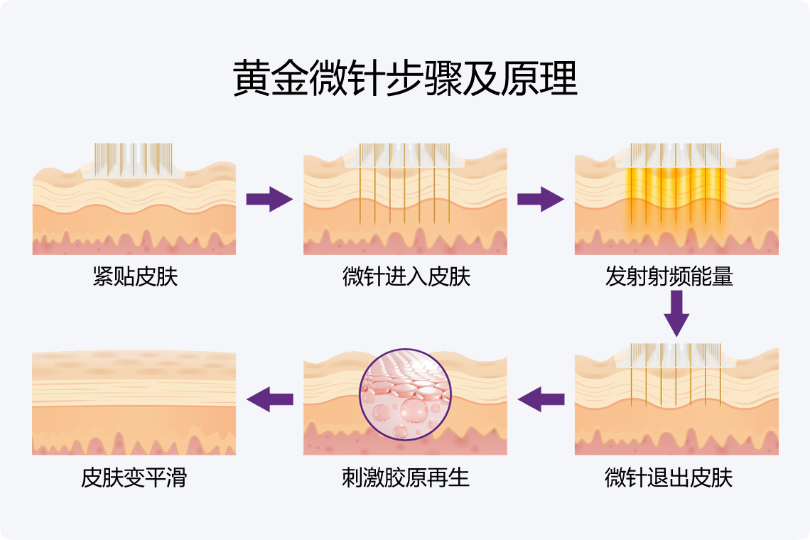 黄金微针是一种结合微针和射频技术的皮肤治疗方法,通过微针在皮肤上产生微小的创口,同时射频能量深入皮肤层,促进胶原蛋白和弹性蛋白的生成,从而改善皮肤质地和紧致度。其效果的显现时间受多种因素影响,包括个体皮肤状况、治疗深度、治疗频次以及术后护理等。