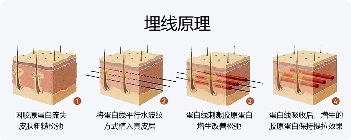 埋线提升通过植入可吸收的线材提升面部肌肤,实现去除皱纹、提升松弛肌肤的效果。